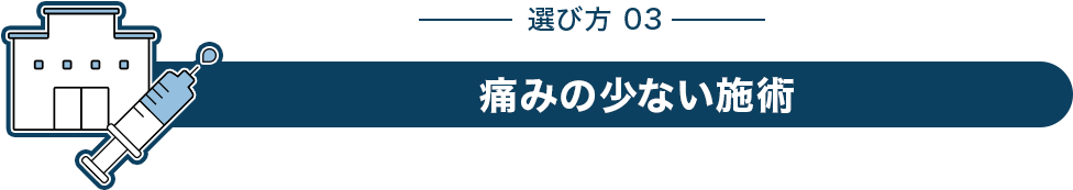治療中や治療後の細かな配慮により、痛みを最大限軽減する工夫がされているのが特徴。